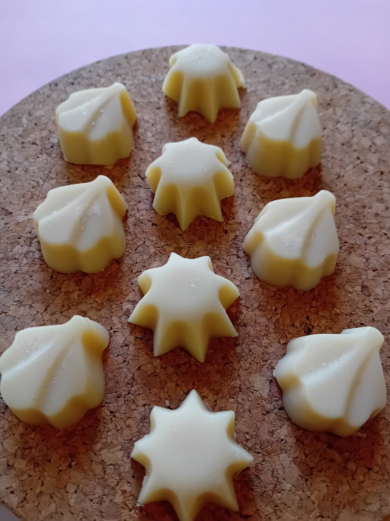 Witte chocolade met een vleugje vanille bonbons dus. Maar dan niet op om te eten, maar om van te genieten als toevoeging voor in je bad =)