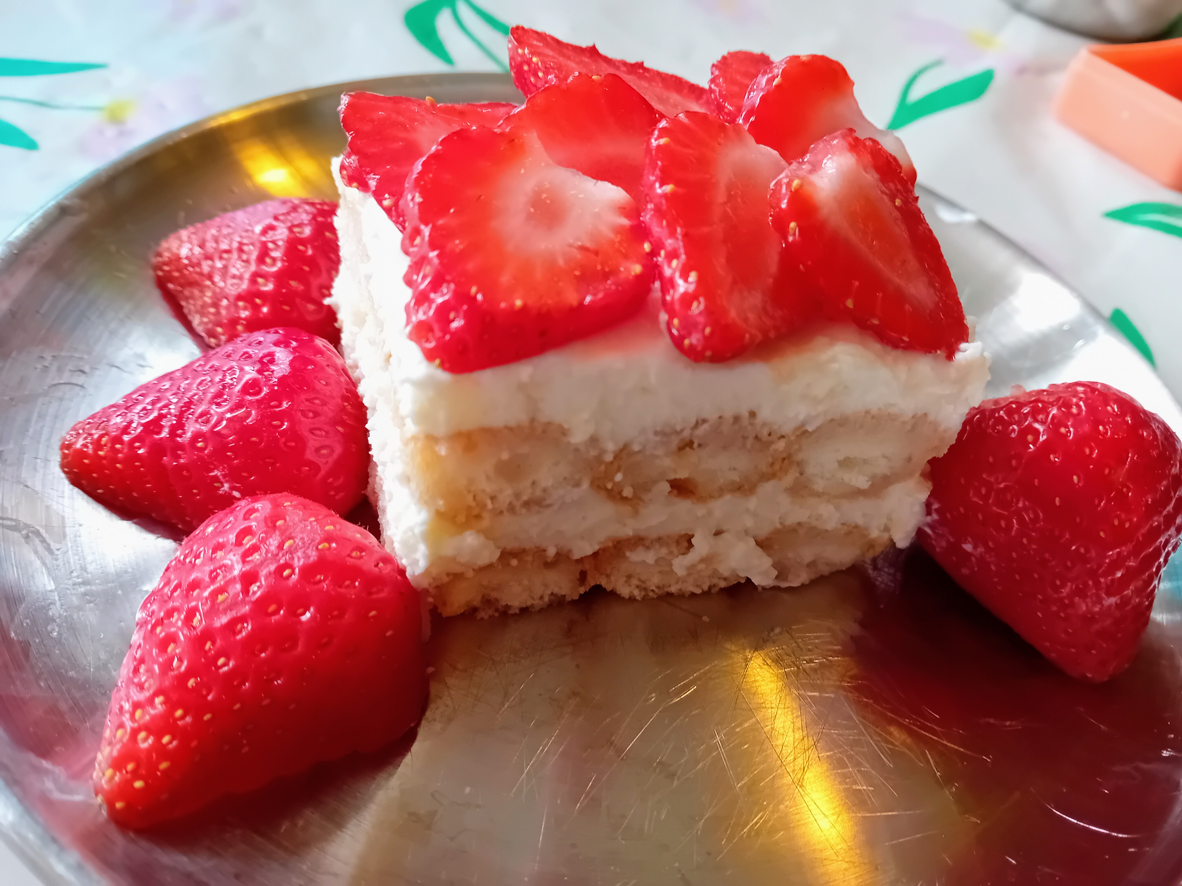 Voor een feestelijke gelegenheid maakten we met de verse aardbeien een variant op de welbekende Tiramisu. Maar dan met huisgemaakte aardbeiensiroop in plaats van de gebruikelijke koffie en alcohol, en met een topping van verse aardbeien in plaats van cacao.
