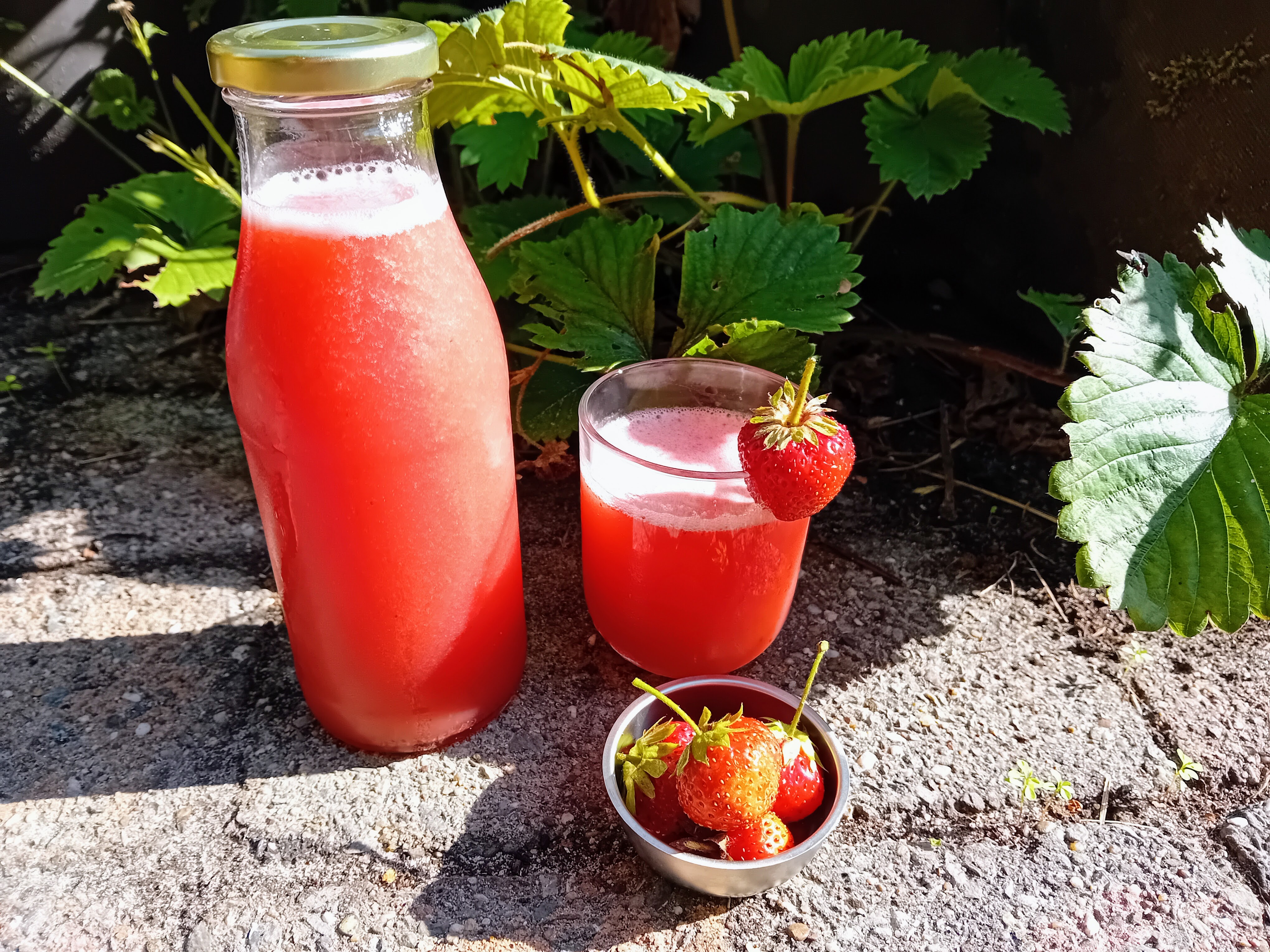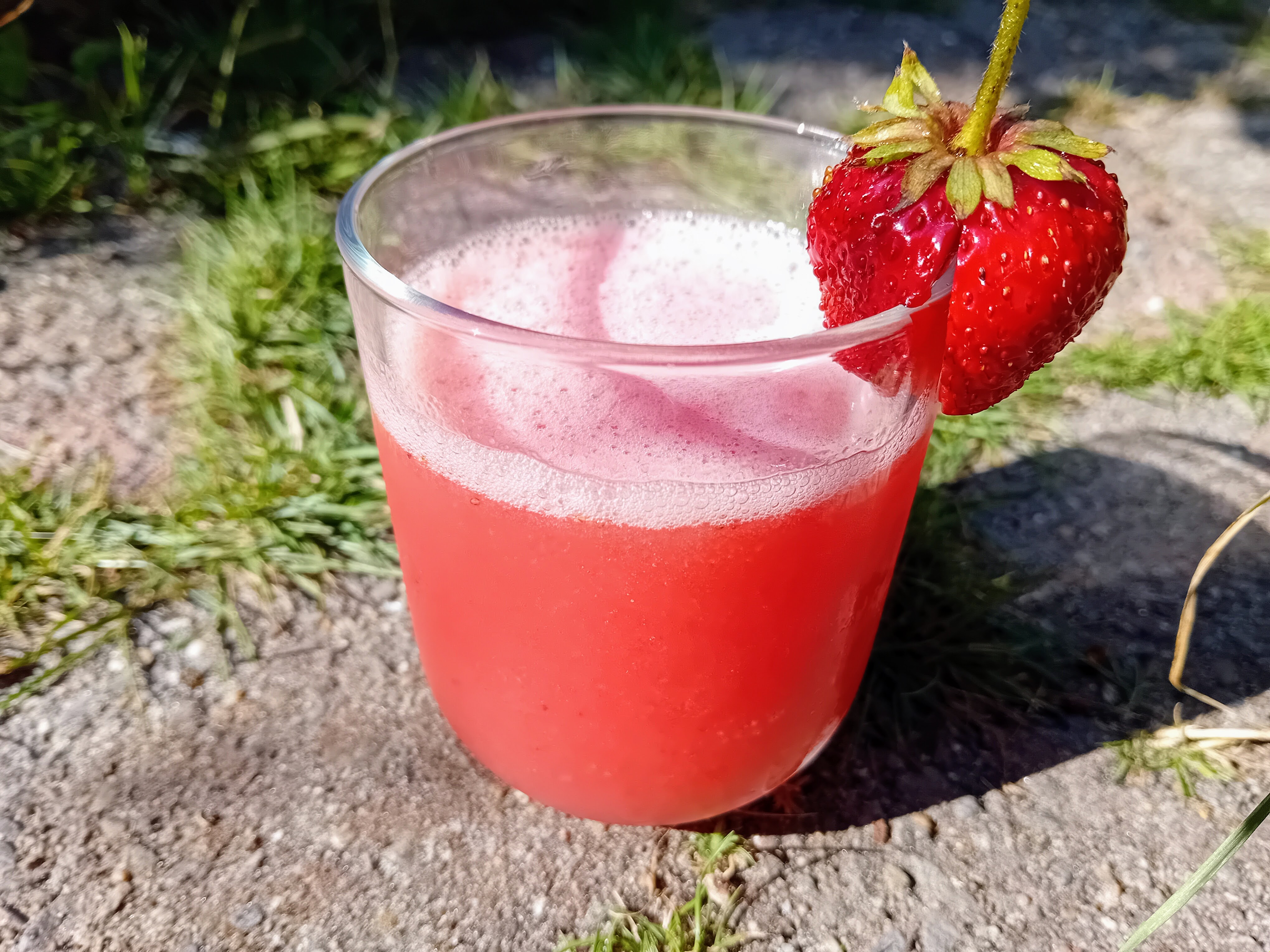– de aardbeien siroop voegt natuurlijk ook extra smaak toe aan dit drankje.