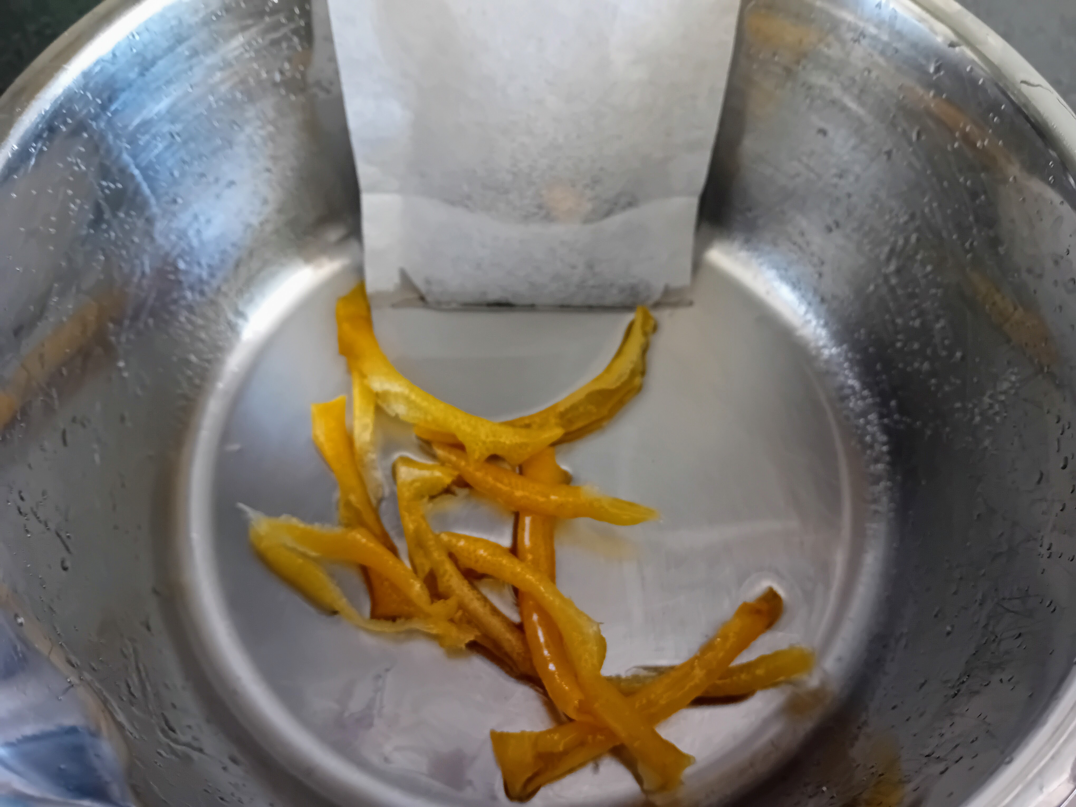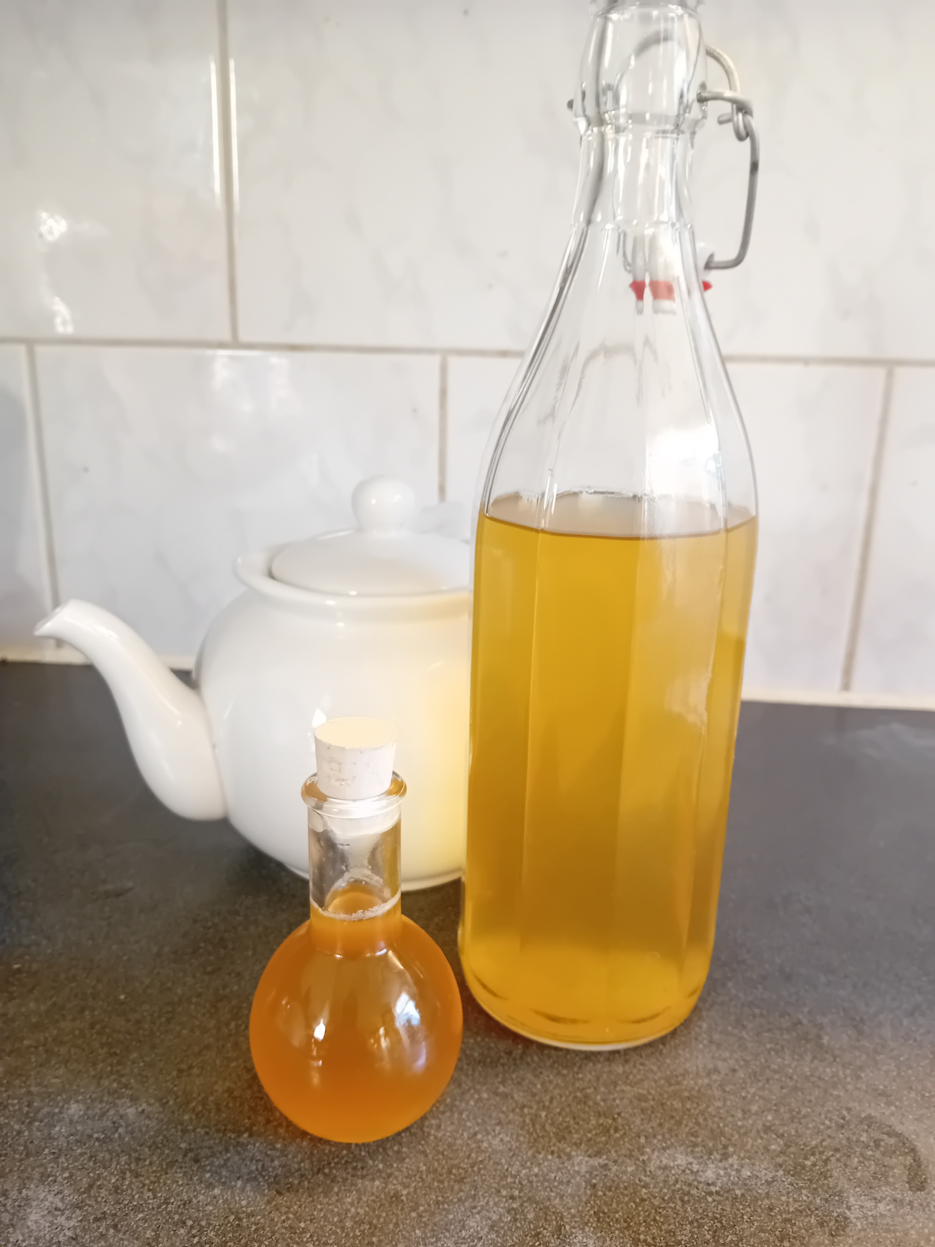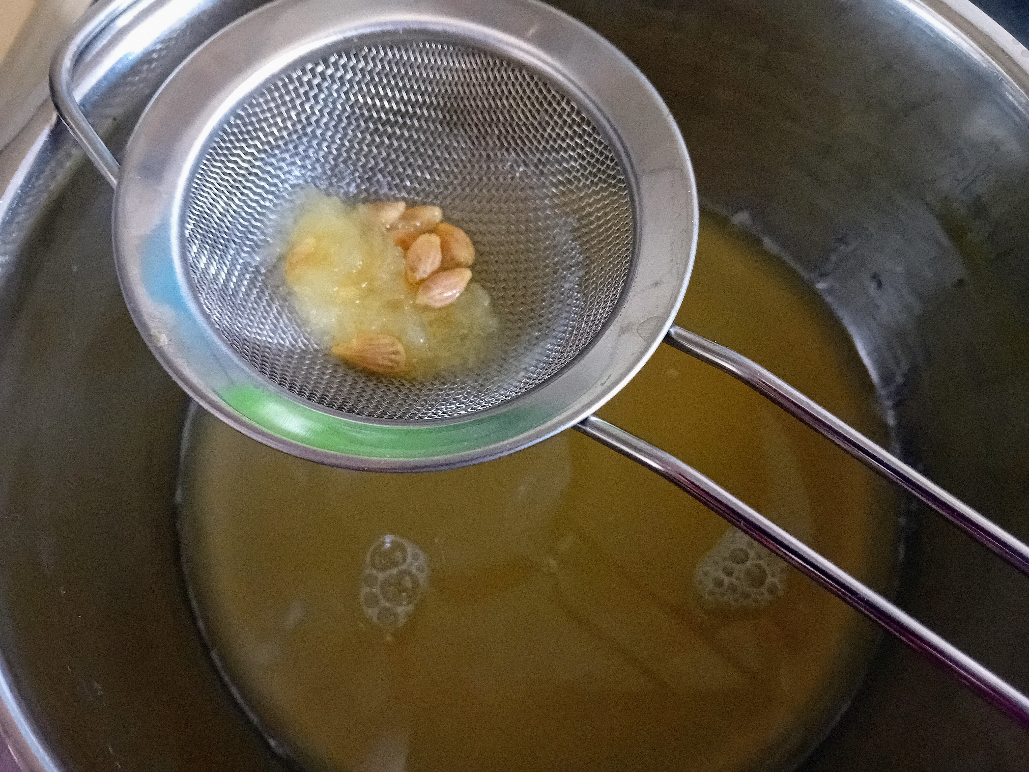 Of ook lekker en heel makkelijk: ik overgiet ze met kokend water (in de pan waarin ik de siroop heb gemaakt), en hang er een theezakje bij.