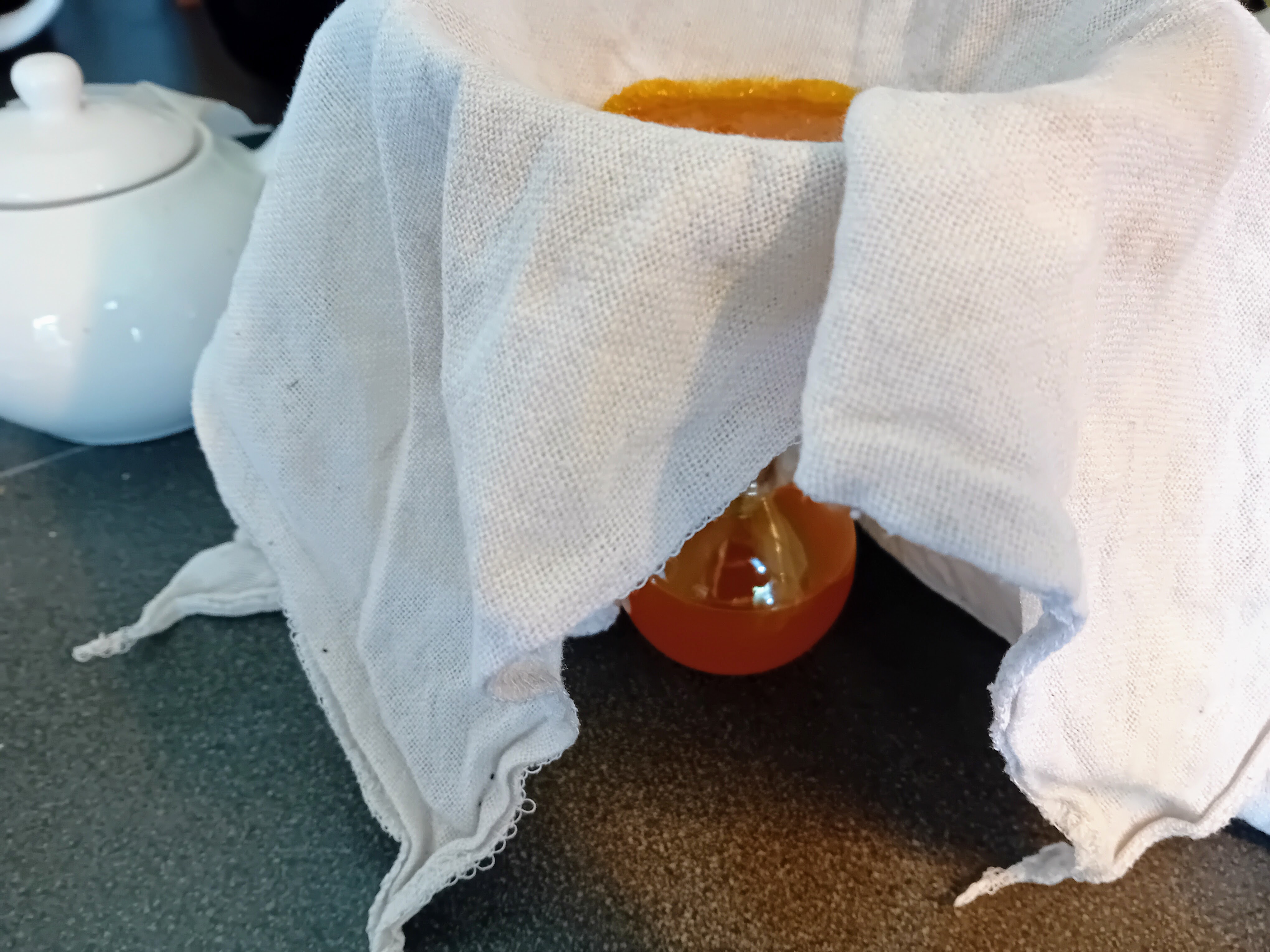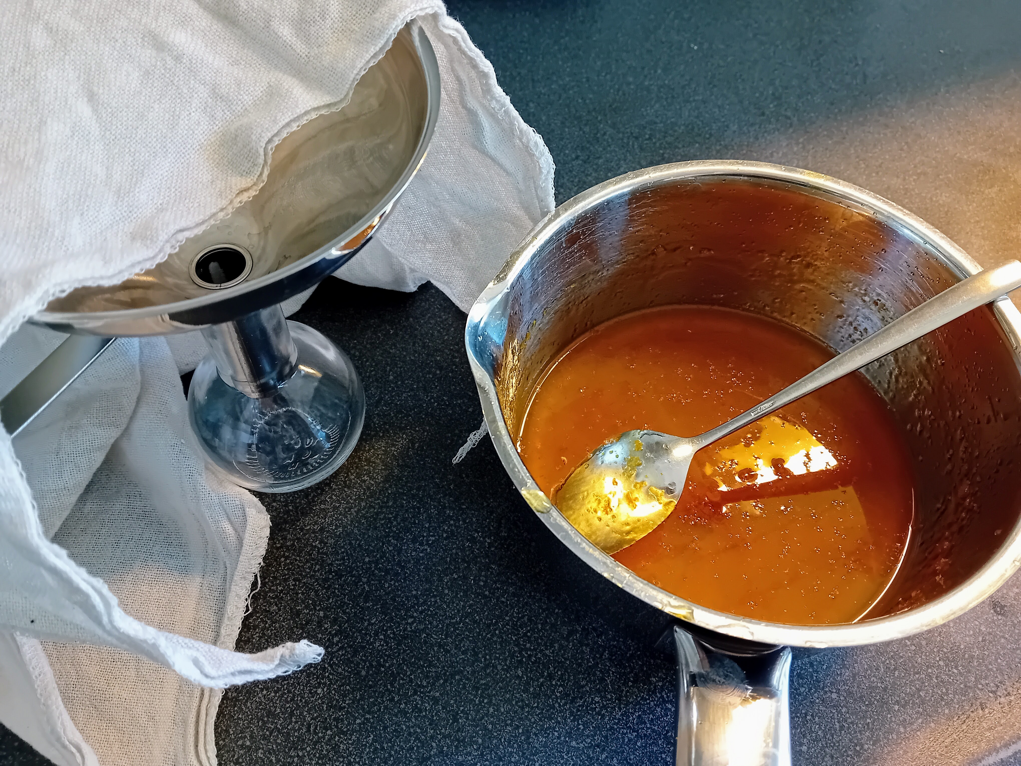 – No-waste: de sinaasappelschillen die je van dit recept overhoud kunnen nog gebruikt worden. Grove schillen bijvoorbeeld als toevoeging aan thee of als (onderdeel van) een infusie. En als ik hier fijne rasp voor maak en gebruik (dan zeef ik met een fijne neteldoek) dan verwerk ik dat bijvoorbeeld in een cake.
