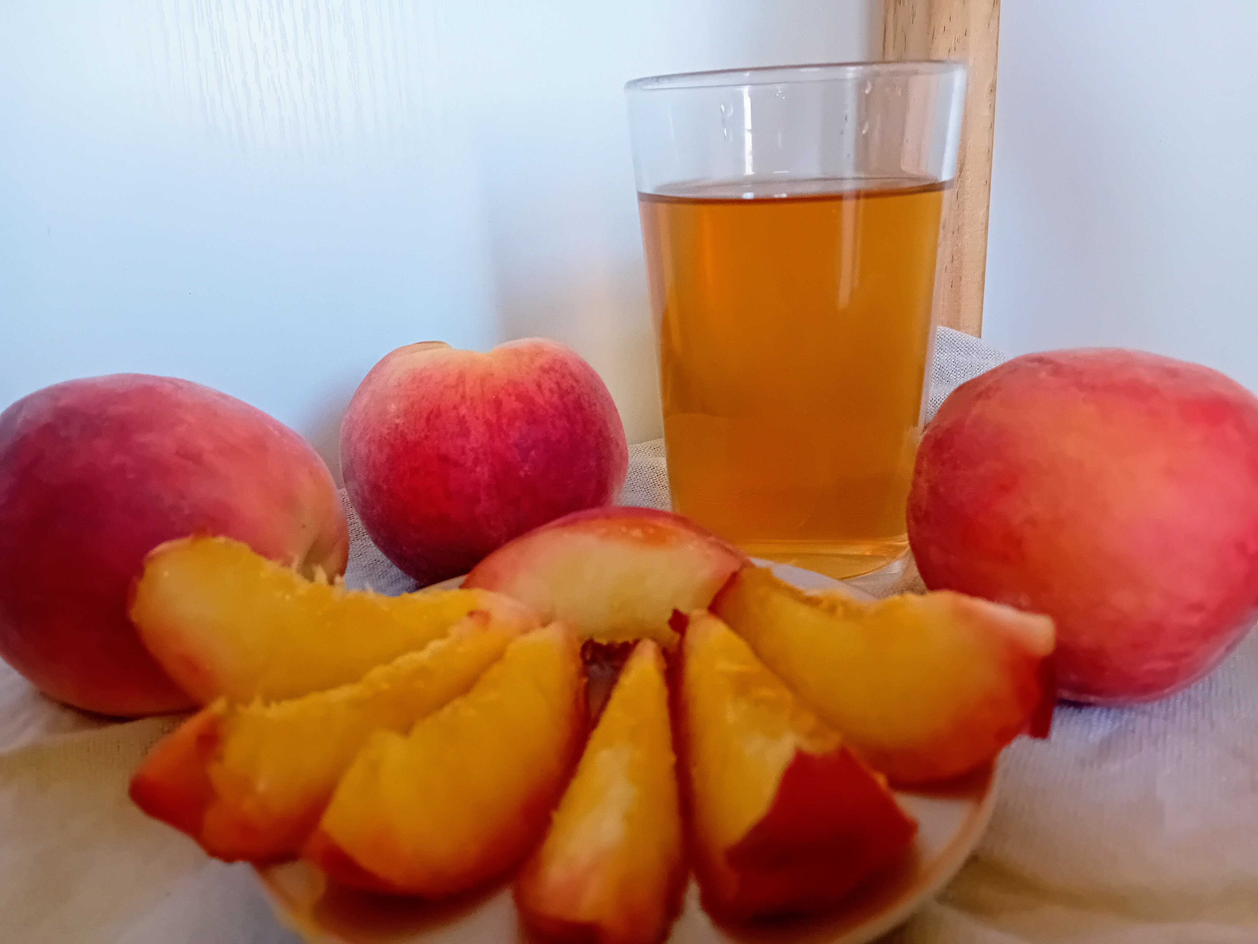 In juli en augustus is het perziken seizoen echt op zijn hoogtepunt, en zijn de zoete vruchten overal volop verkrijgbaar. Lekker om zo op te smikkelen, en we maken er verder ijsthee van, perzik siroop, fruitspread, perzik flapjes, enz.