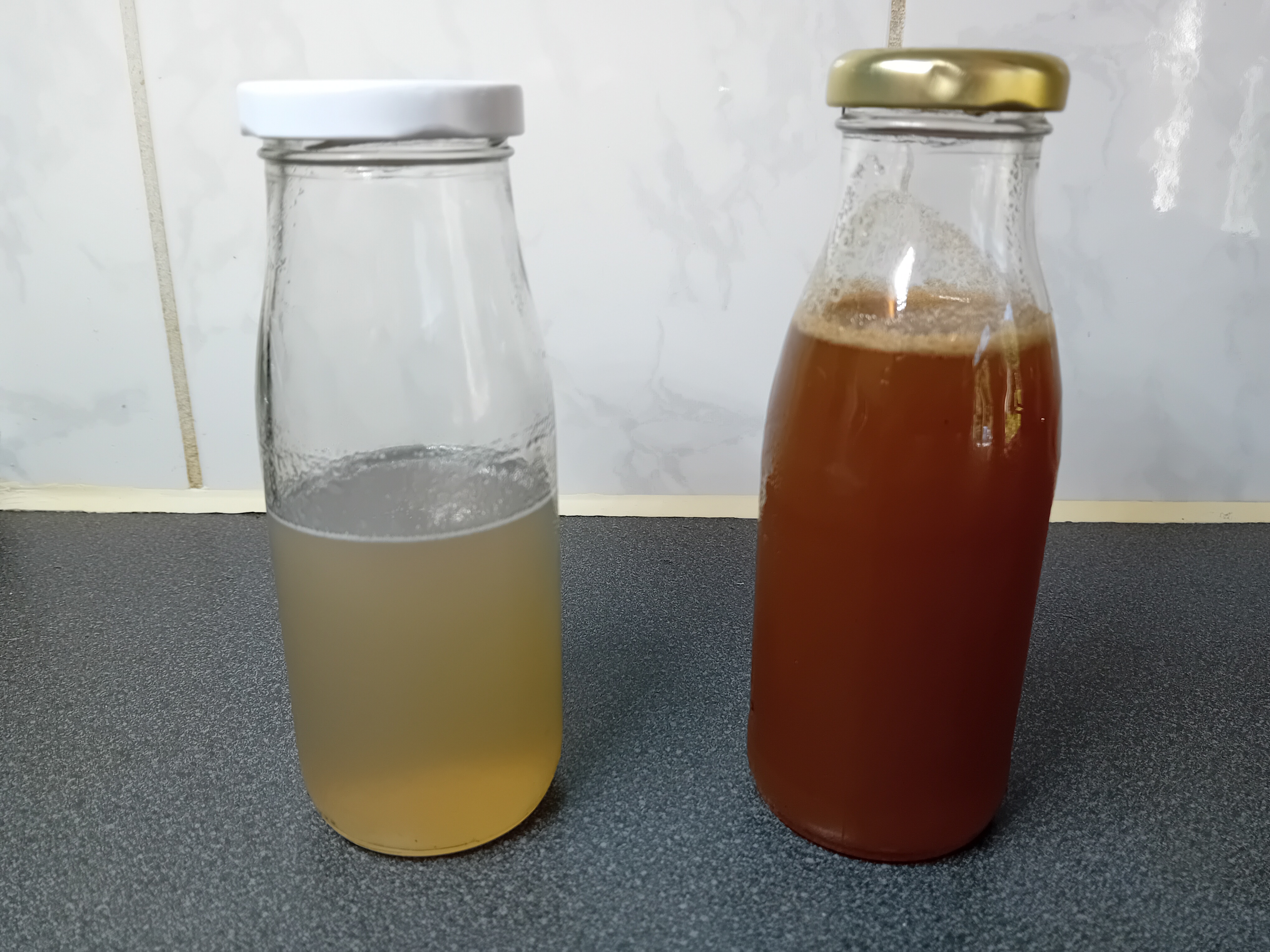 Op de foto hieronder zie je links de versie met kristalsuiker, en rechts de demerara suiker versie.